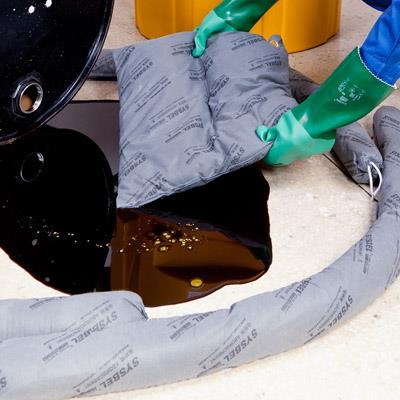 Utilitzar els absorbents Kits SYSBEL SPILL: treure ràpidament mitjons absorbents per desviar i deixar el material vessat si ha estat una oportunitat per difondre; netejar el vessament continguda amb absorbents i coixins per mesura del volum del vessament. Per al tractament de materials tòxics, és important utilitzar propi llaunes per adonar-se d'aillaments.